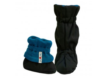 Die ManyMonths Reversible Winter Booties bestehen aus 2 Stoffschichten: innen befindet sich der Merinowoll-Rippstrick und Softshell MaM*tec Polyester mit Polyurethan.Jeder mit Trageerfahrung weiss, dass es wichtig ist, die Füsse eines Babies im Tragetuch oder in der Tragehilfe leicht auskühlen. Daher ist warme Fuss- und Wadenbekleidung besonders wichtig. Die Zehen brauchen Platz zum Bewegen und für Luft. ManyMonths hat die ultimativen Booties für den Winter! Durch den langen Schaft eignen sie sich auch für alle Situation wo die Hose gerne hochrutscht (zB. im Kinderwagen) oder einfach wenns Baby kalte Füsse hat. Die Booties können dank elastischem Gummi gut verstellt werden. Wendbar. Doppellagiger Stoff, die eine Seite ist auch weichem Merinostrick, die andere aus kuscheligem Polarfleece.